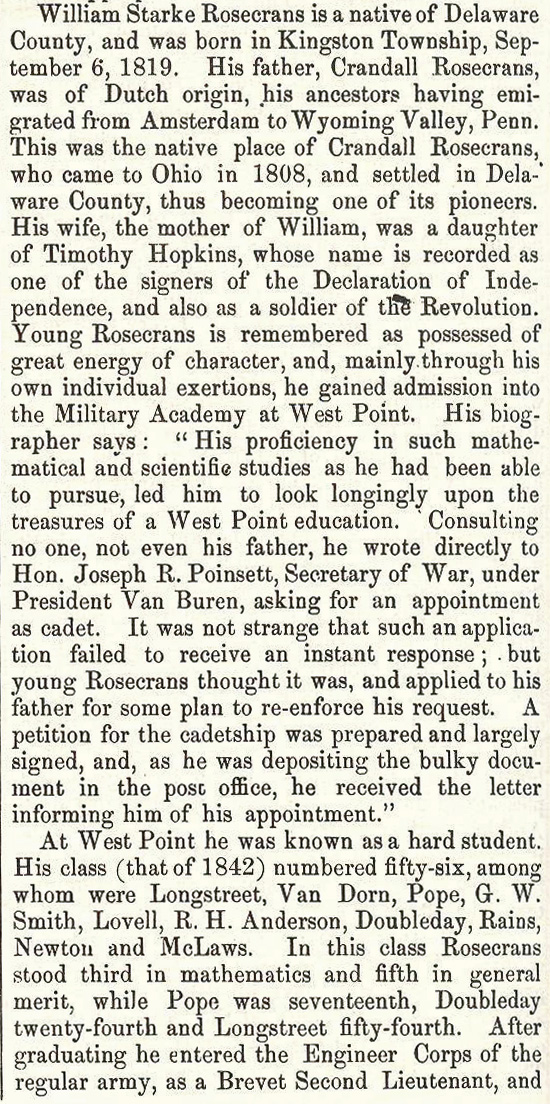 Return to Rosecrans Biography |