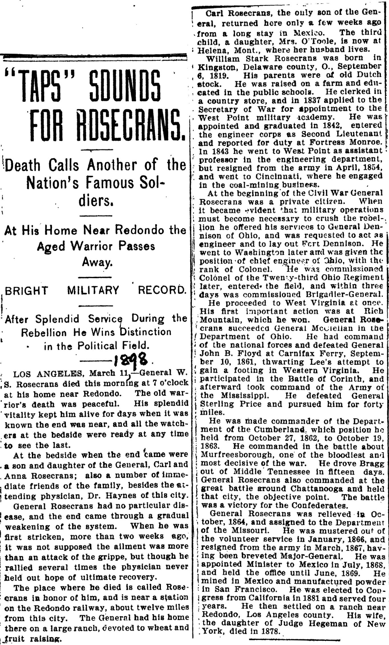 Obituary in the Los Angeles Newspaper March 11, 1898