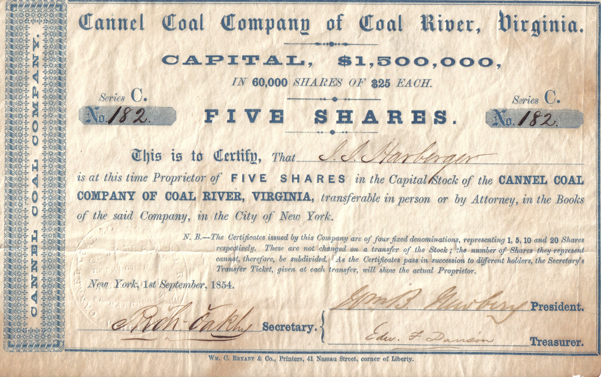 Although still not recovered from exhaustion, William worked as an architect and consulting engineer until June 1855 when an agent from Cannel River Coal Company, an English and American company, invited him to take charge of the company's mining interests on Coal River, Kanawha County, Virginia. The known seams had been mined out |