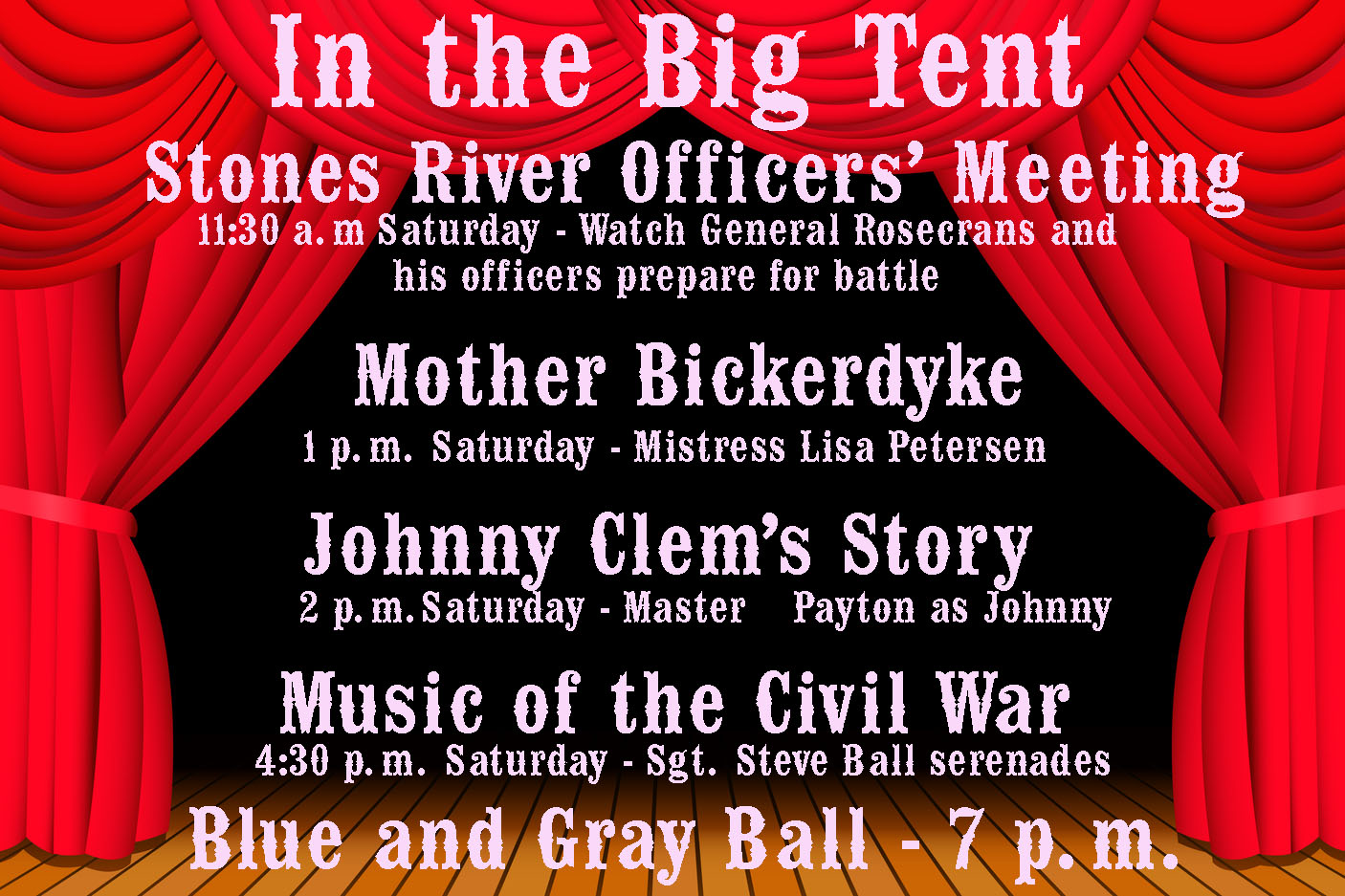 All events in the Big Tent are part of the Living History Pageants - Admission is Free | |||||||