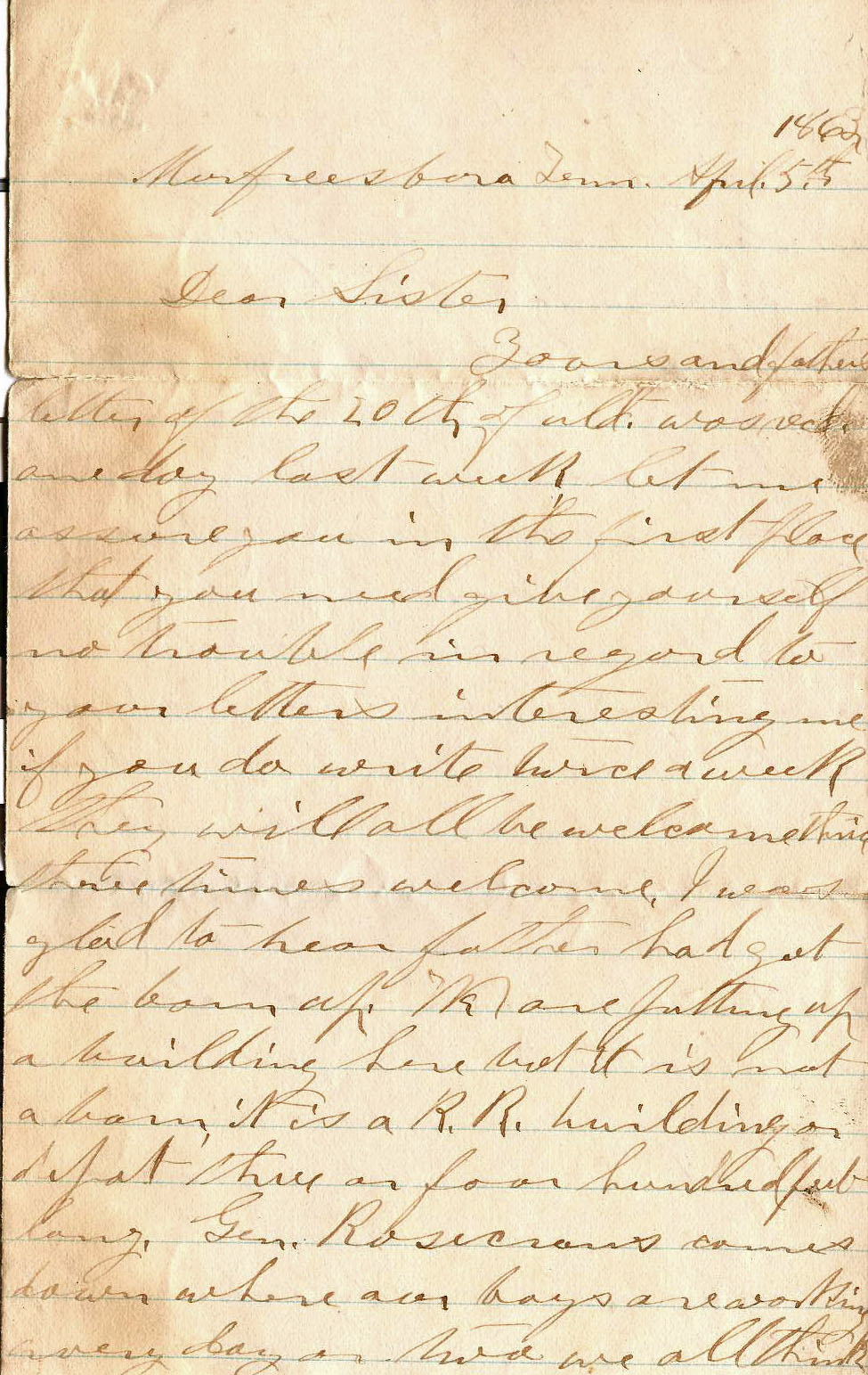Letter from James to his Sister in care of Dr. James P. Streeter Allegan, Michigan