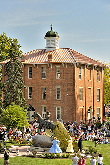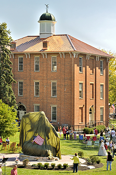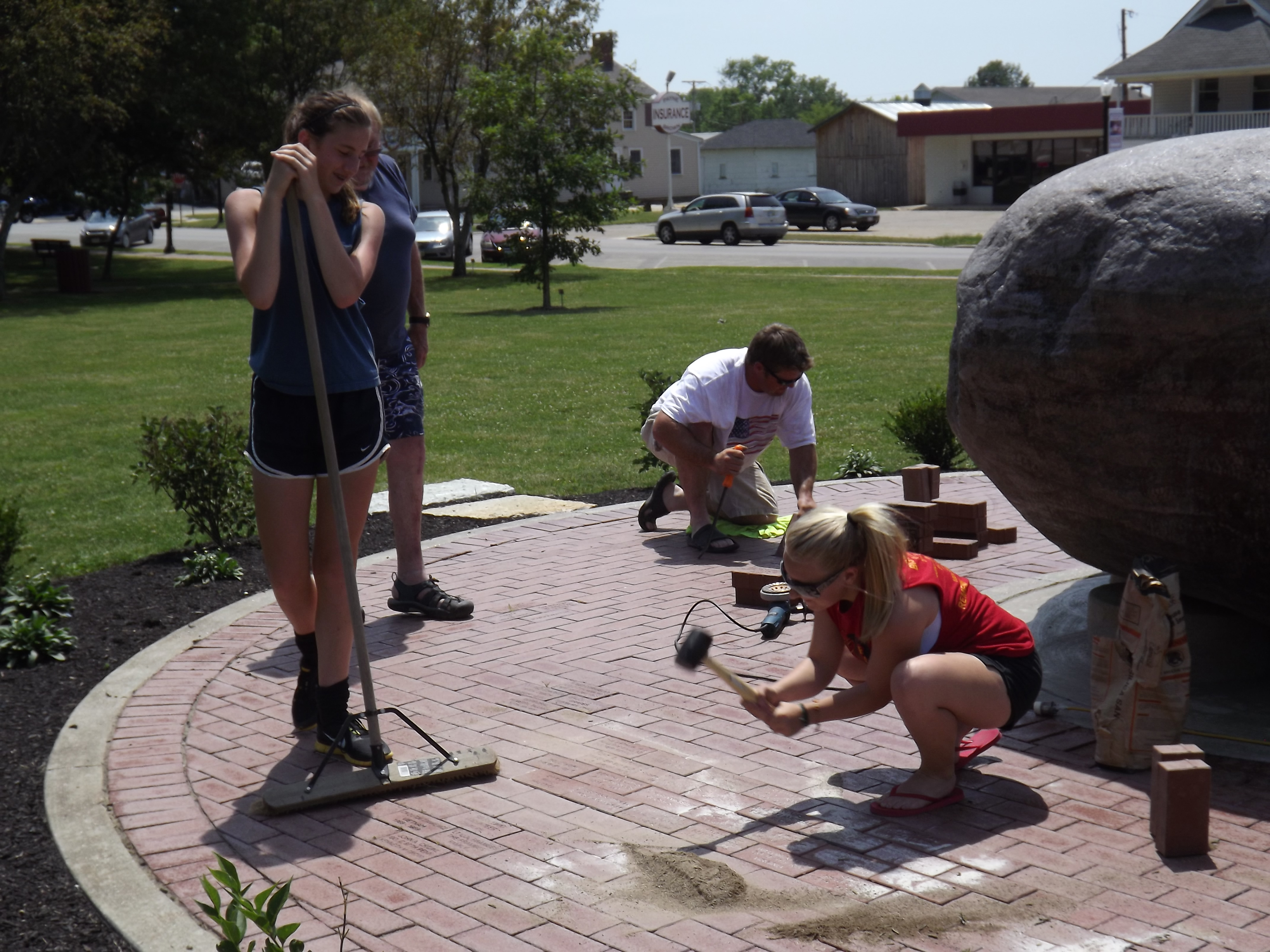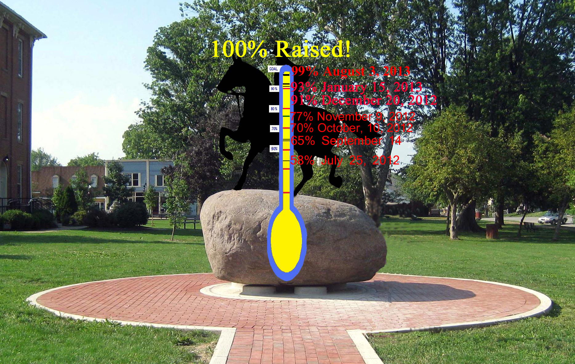 100% of the funds for Alan Cottrill to sculpt the statue were raised plus the extra money to move the sculpture to Sunbury and attach it to the boulder. Bricks were added to the walkway before the Dedication on September 28th, 2013. |