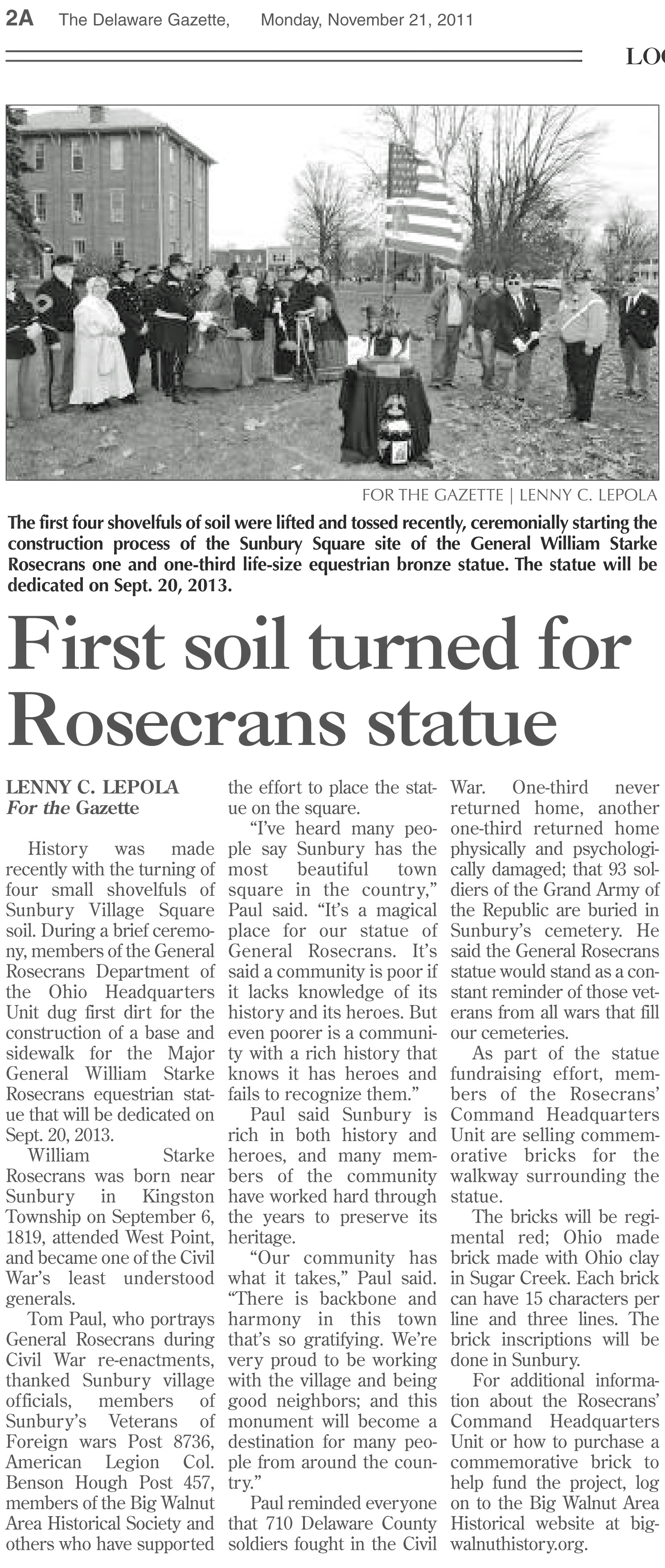 Nov. 21, 2011 | Delaware Gazette: First Soil Turned for Rosecrans Statue | |||